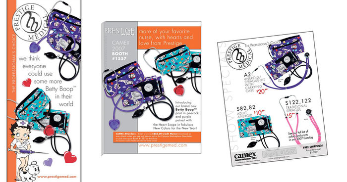Trade shows are always interesting to create materials for and this one is especially so since it is specifically for the campus bookstore market. The extra-special part of this show was the introduction of the Betty Boop® products. It took about a year from acquiring the licensing to creating the fabric to incorporating it in the product lines.